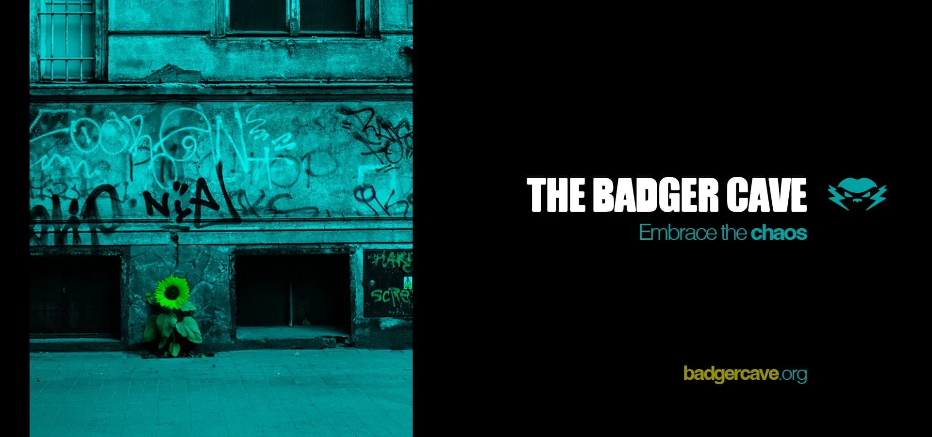 Then one full-width dark image strip — use the "Enter the Cave. Or stay the f*** out"